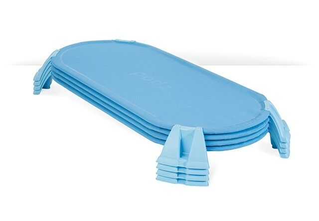 ULTRADURABLE™ State-of-the-art construction has no exposed hem which eliminates fraying. Steel frame with integrated feet provides the ultimate in durability. ULTRAREST ™ Patent pending design allows cot to flex making naptime more comfortable. Ergonomic shape fits children’s bodies better and provides more usable space. ULTRASAFE ™ Completely enclosed, no-gap design prevents small fingers and toys from getting lodged in openings. ULTRACLEAN ™ Unique foot design has no channels or wells to collect dirt and germs. Podz™ eliminates those tough-to-clean areas. Fabric can be cleaned again and again. 42.33"L x 27.165"W x 5.0"H Set of 4